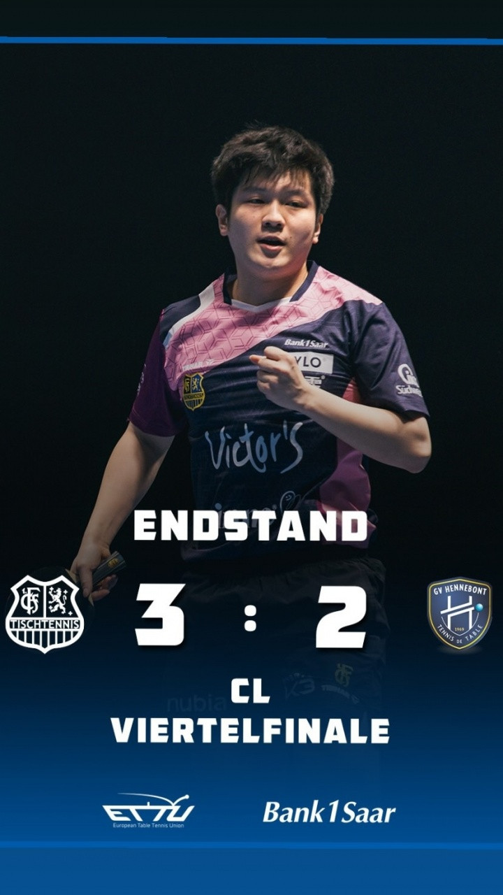 直播吧02月14日讯乒乓球欧冠联赛1/4决赛第二回合,萨尔布吕肯主场3-2击败亨尼邦,晋级半决赛。樊振东在第一盘和第四盘出战,第四盘比赛前,盘分2比1领先的萨尔布吕肯已经锁定晋级资格。