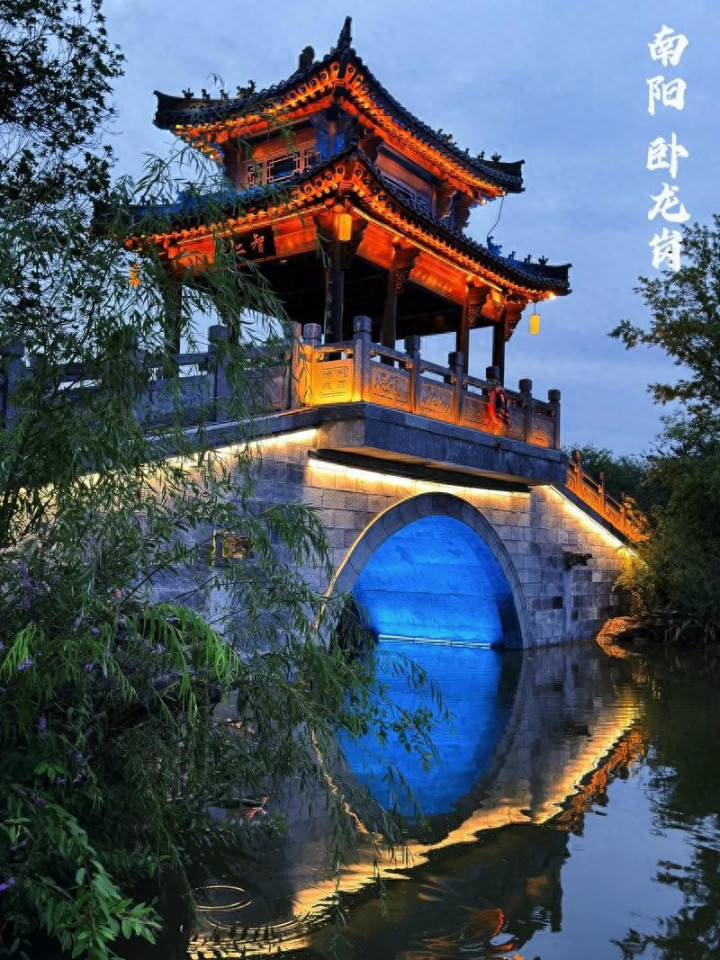 城里有卧龙岗。一道高岗,势似虬龙,故名卧龙。岗上有武侯祠,始建于魏晋,是为纪念诸葛亮而建。祠内古木参天,碑碣林立。岳飞手书的《出师表》石刻,就珍藏在碑廊里。祠后是诸葛草庐,八角攒尖,简朴清雅。门前对联写道:“心在朝廷原无论先主后主,名高天下何必辨襄阳南阳”。这副对联是清代的南阳知府顾嘉蘅写的,他先后五任南阳知府,深知两地的争论,用这副对联平息了纷争。